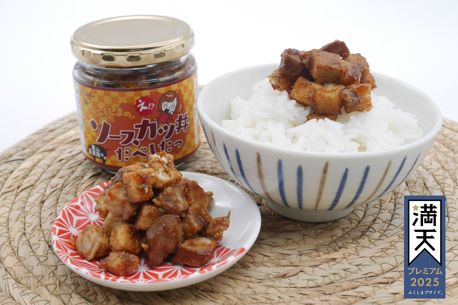 福島のブランド豚「麓山高原豚」と、パン粉に見立てたクルトンを入れました。福島県の果物が入ったちょっと贅沢で甘めのソースが、まさにソースカツ丼を彷彿とさせます。